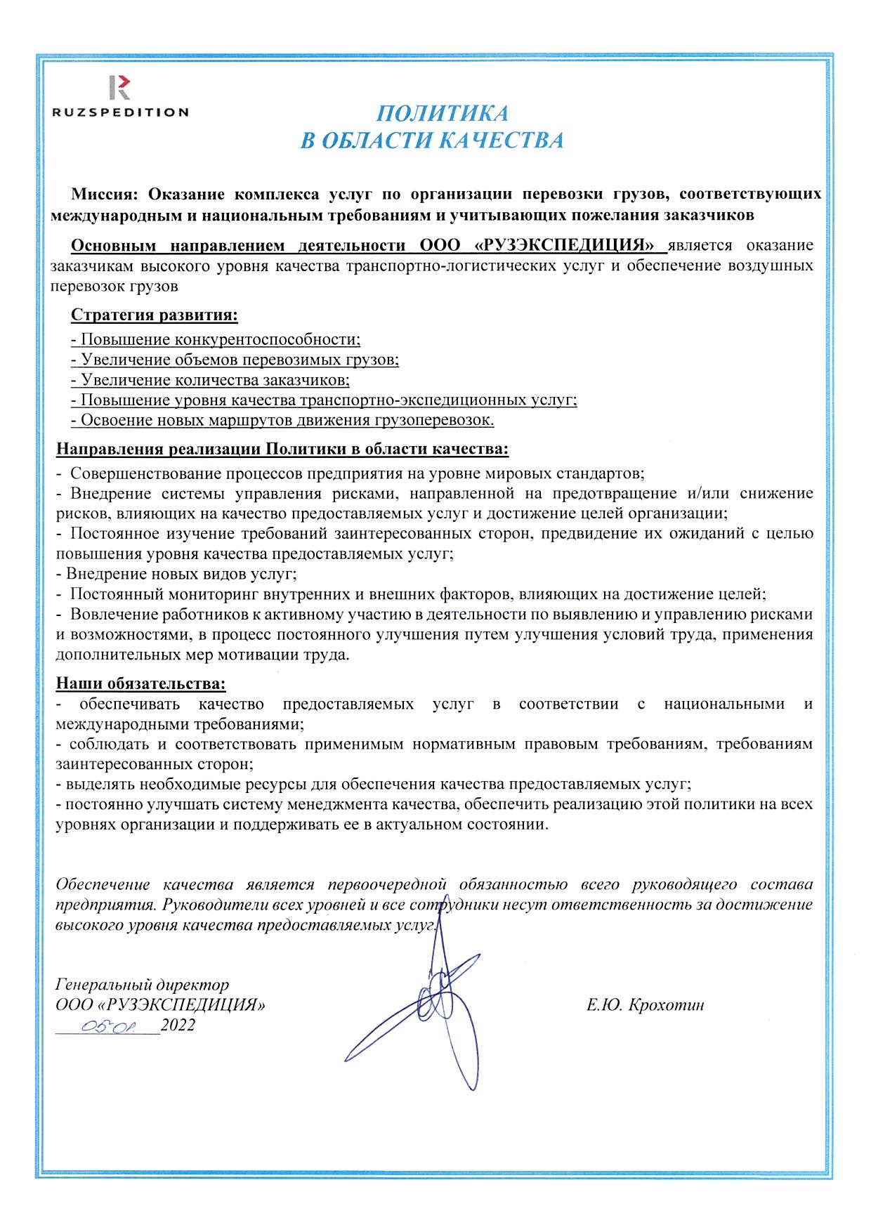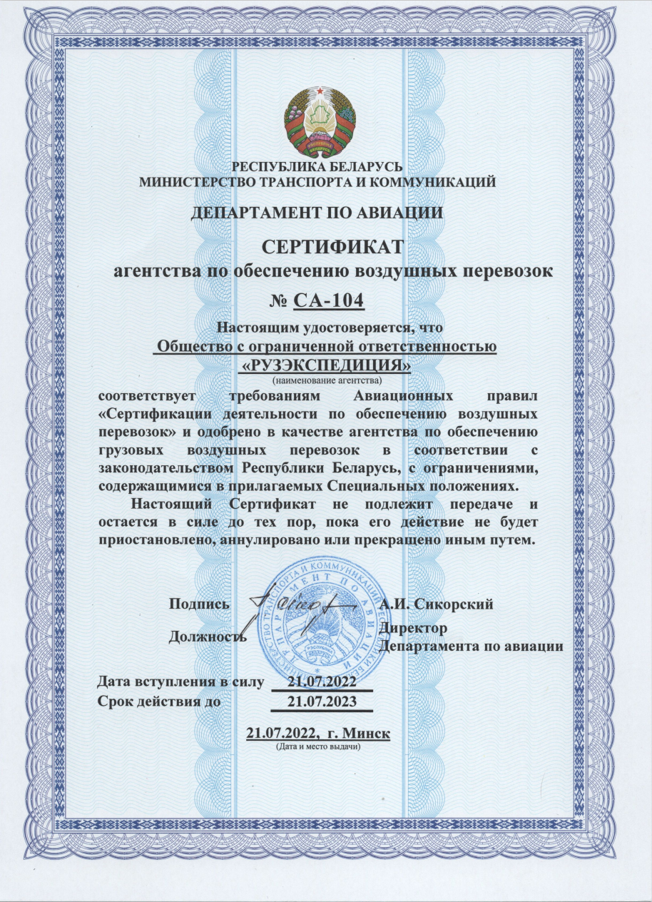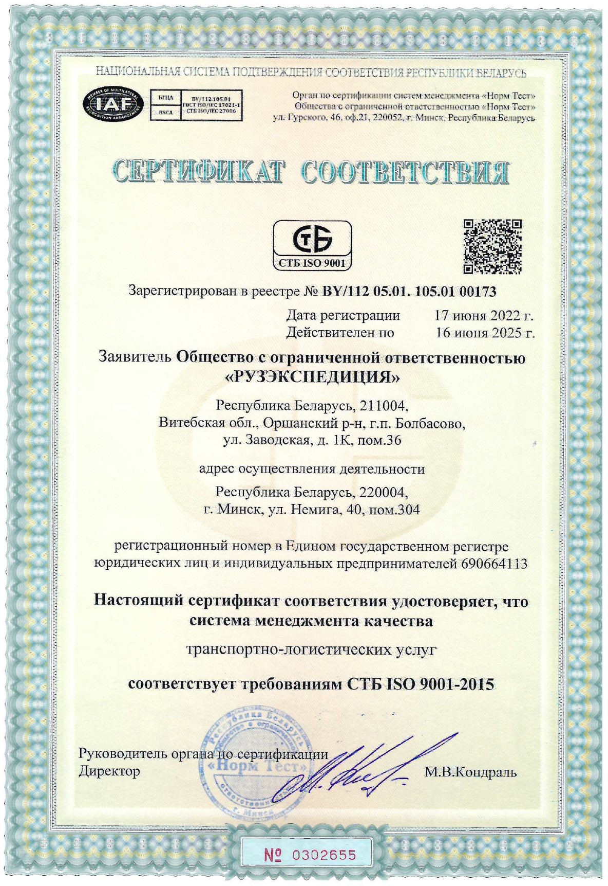 Our documents certifying the object’s compliance with the requirements of technical regulations, standardization documents and contract terms.